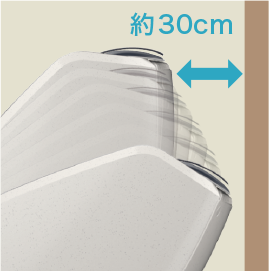 壁から約30cmあれば設置できる省スペース設計。お部屋のレイアウトを気にせず配置できます。